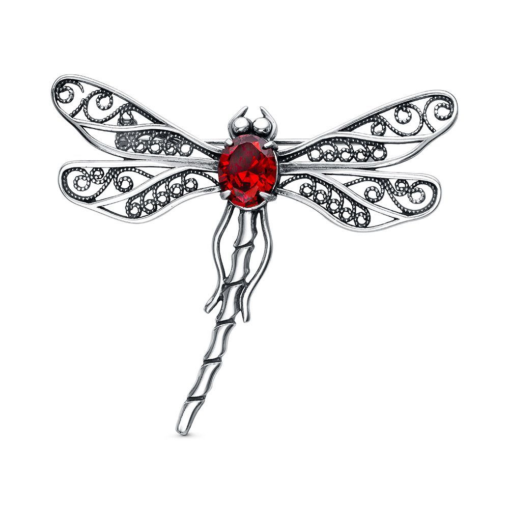 Вид металла - Серебро 925 пробы Вид изделия - Брошь Вставки - Фианит (недрагоценный камень) Покрытие - Оксидирование