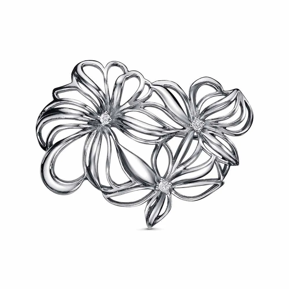 Вид металла - Бижутерия Вид изделия - Брошь Вставки - Фианит (недрагоценный камень) Покрытие - Серебрение с оксидированием