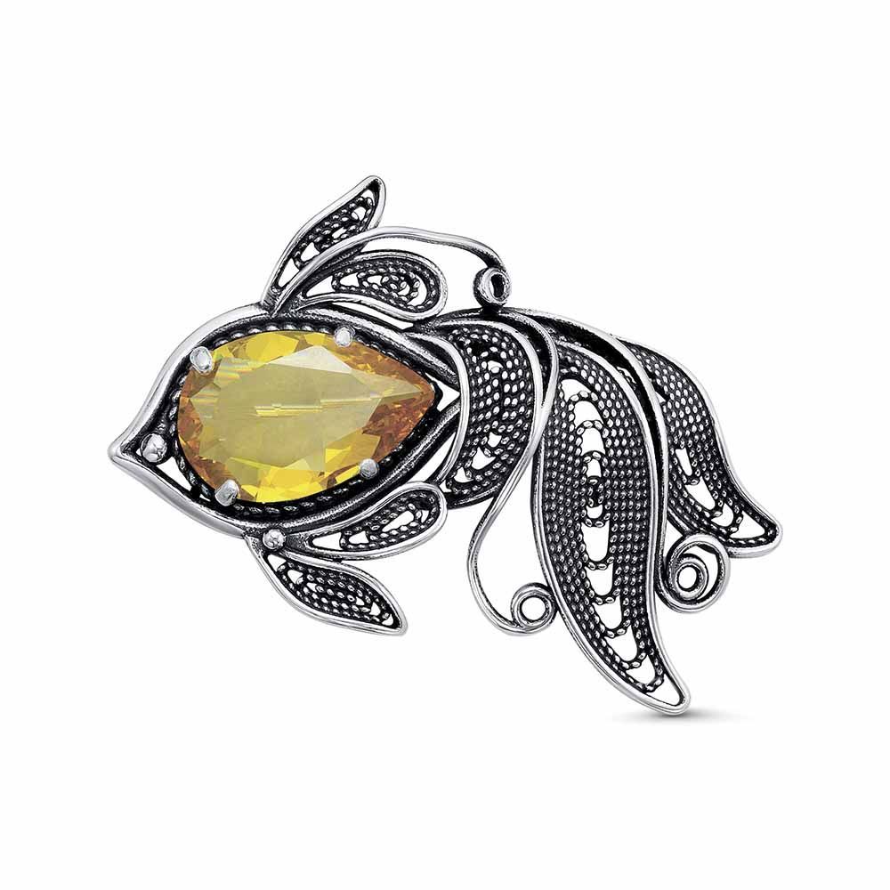 Вид металла - Бижутерия Вид изделия - Брошь Вставки - Фианит (недрагоценный камень) Покрытие - Серебрение с оксидированием