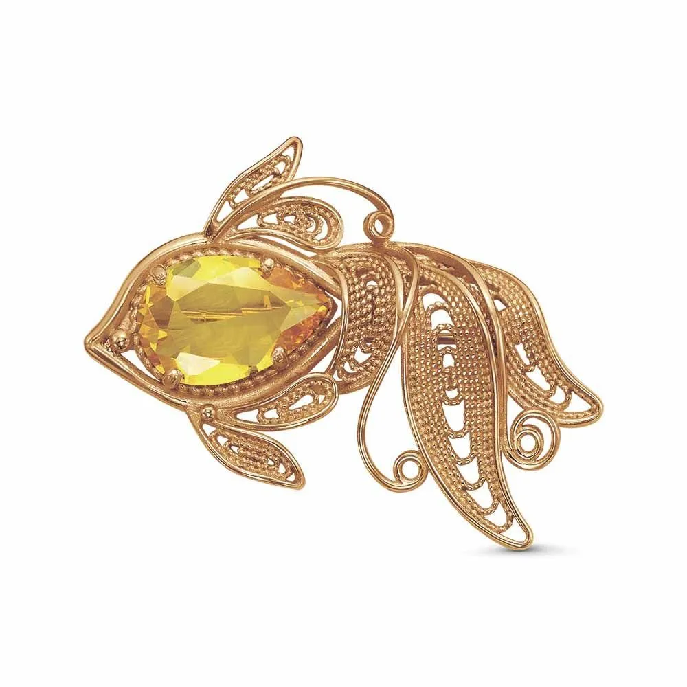 Вид металла - Бижутерия Вид изделия - Брошь Вставки - Фианит (недрагоценный камень) Покрытие - Золочение