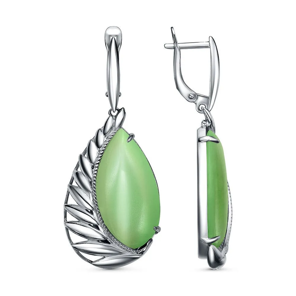 Вид металла - Бижутерия Вид изделия - Серьги Вставки - Искусственный кошачий глаз Покрытие - Серебрение с оксидированием