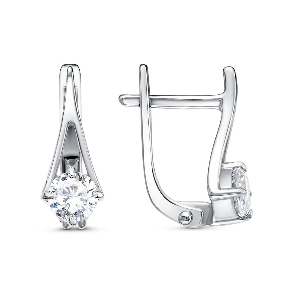 Вид металла - Бижутерия Вид изделия - Серьги Вставки - Фианит (недрагоценный камень) Покрытие - Платинирование