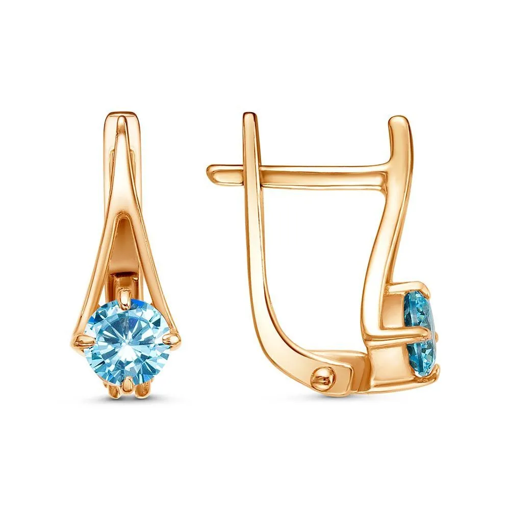 Вид металла - Бижутерия Вид изделия - Серьги Вставки - Фианит (недрагоценный камень) Покрытие - Золочение