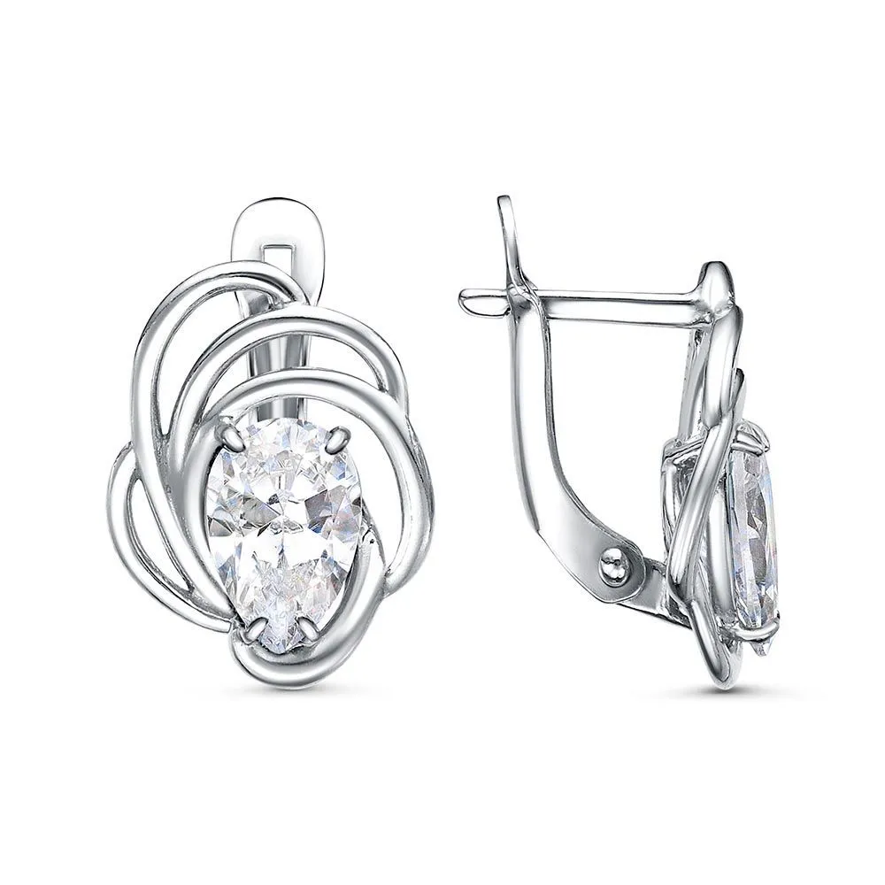 Вид металла - Бижутерия Вид изделия - Серьги Вставки - Фианит (недрагоценный камень) Покрытие - Платинирование