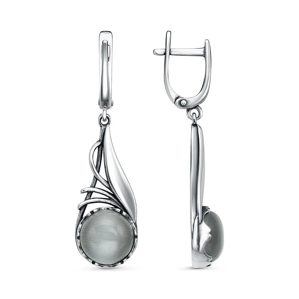 Вид металла - Серебро 925 пробы Вид изделия - Серьги Вставки - Искусственный кошачий глаз Покрытие - Оксидирование