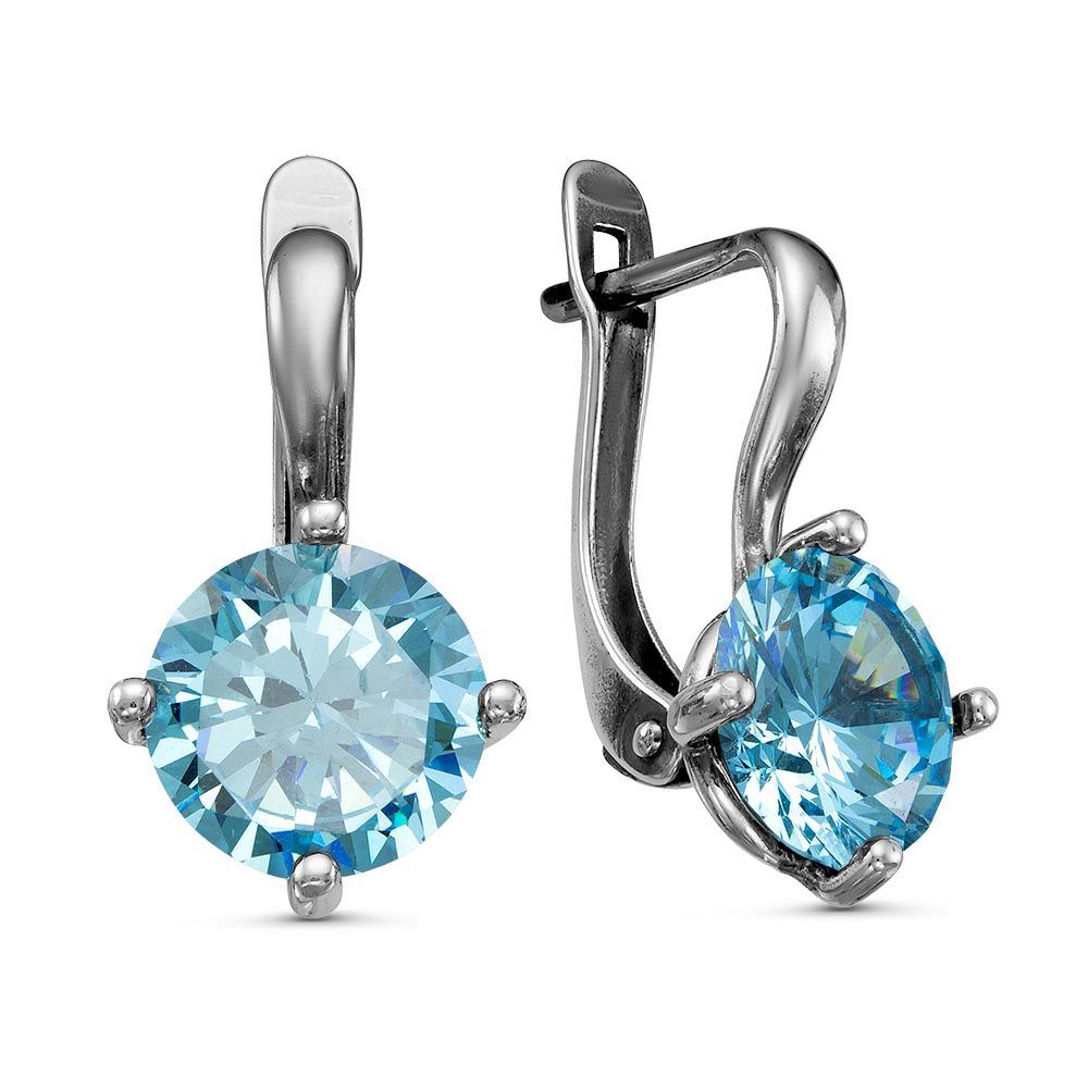 Вид металла - Бижутерия Вид изделия - Серьги Вставки - Фианит (недрагоценный камень) Покрытие - Серебрение с оксидированием