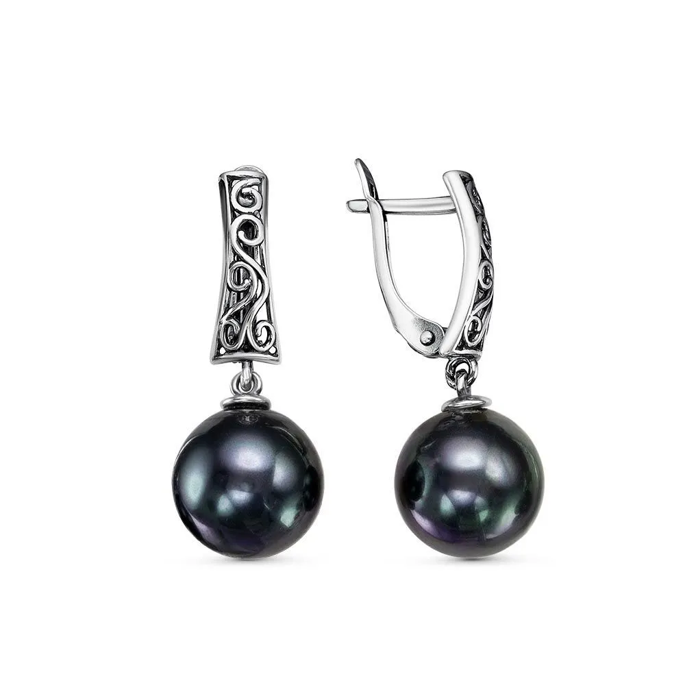 Вид металла - Бижутерия Вид изделия - Серьги Вставки - Имитация жемчуга Покрытие - Серебрение с оксидированием