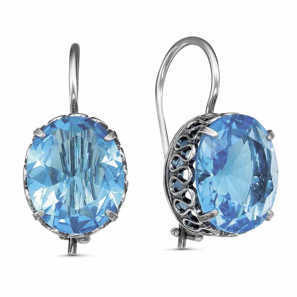 Вид металла - Бижутерия Вид изделия - Серьги Вставки - Стекло ювелирное Покрытие - Серебрение с оксидированием